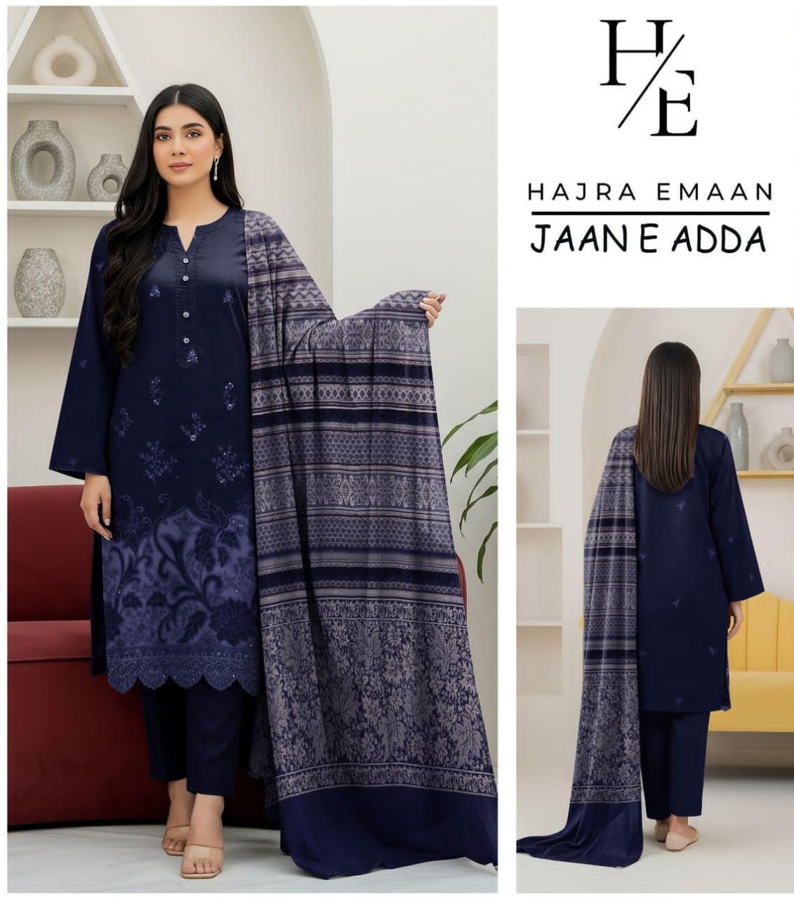Be the first to review “JAAN E ADDA KHADDAR WITH JACQUARD SHAWL STITCHED SUIT”